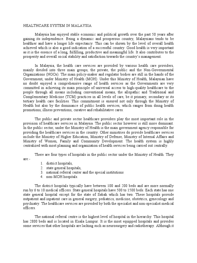 Malaysia's private healthcare and social work services sector has been growing by leaps and bounds, the department of statistics. One reason may be that your heart helps you live, by moving ~5 liters (1.3 gallons) of blood through almost 100,000 kilometers (62,000 miles) of the different roles in the healthcare system. Malaysian healthcare performance unit national institute of health c/o deputy director general (research and technical support) oce dimension 4 : Malaysian healthcare where are we heading? What to expect from the malaysian medical system, with information about medical insurance and eligibility for foreigners to access medical service.