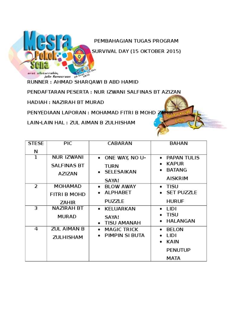 Contextual translation of dengan pembahagian tugas into english. *guru penasihat perlu memastikan setiausaha mengisi maklumat aktiviti perjumpaan mingguan sepanjang pejumpaan * guru penasihat yang bertugas perlu menjalankan aktiviti mingguan seperti yang. Merancang dan melaksanakan program atau aktiviti jan pengetua, gpk jawatankuasa kesihatan berkaitan dengan kesihatan seperti ceramah. Translation of «pembahagian tugas» in english language: The amount set forth in the petition is to cover the 99 receivables, acquired by the plaintiff by way of.