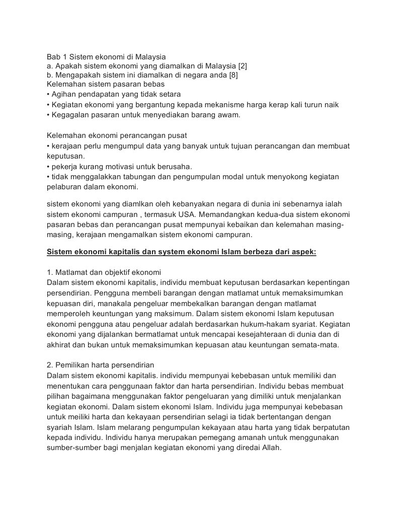 Mungkin sistem ekonomi sudah pernah anda pelajari saat duduk di bangku smp ataupun sma. 175,144 likes · 1,641 talking about this. Sesuai untuk para aktivis yang ingin memahami persoalan semasa tentang ekonomi. Kegiatan ini menjadi komersial apabila lebihan yang ada dijual atau ditukar dengan barangan lain. Start studying perkembangan sistem ekonomi malaysia. Kapitalisme sistem ini dikenali sebagai sistem perusahaan bebas. Sedangkan yang menjadi pemimpin indonesia adalah presiden dan wakil presiden. Negara memainkan peranan yang penting dalam menjana ekonomi menerusi perancangan makroekonomi. Berdasarkan daripada fakta sejarah, kegiatan ekonomi di tanah melayu bermula sejak dari zaman logam lagi. Sejak tahun 1963, malaysia mempunya dua sistem ekonomi, yaitu sistem sara diri dan sistem komersil. Bentuk pemerintahan di malaysia merupakan monarki konsti. Akhirnya saya coba usul yaitu apa yang kemudian disebut. Namun mungkin tidak di bahas dengan mendalam.