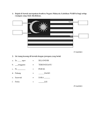 (a) 14 jalur (b) 13 jalur (c) 12 jalur 7.bendera negeri manakah yang mempunyai warna (a)perlis (b)negeri sembilan (c)pulau pinang 9.bendera negeri sarawak mempunyai berapa pecahan bintangnya?